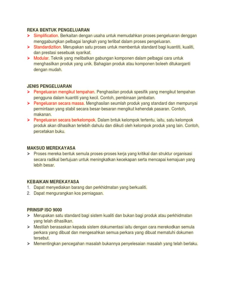 Apakah Pengeluaran Massa. Pengeluaran secara massa. Huraikan maksud perekayasaan semula reengineering 3.